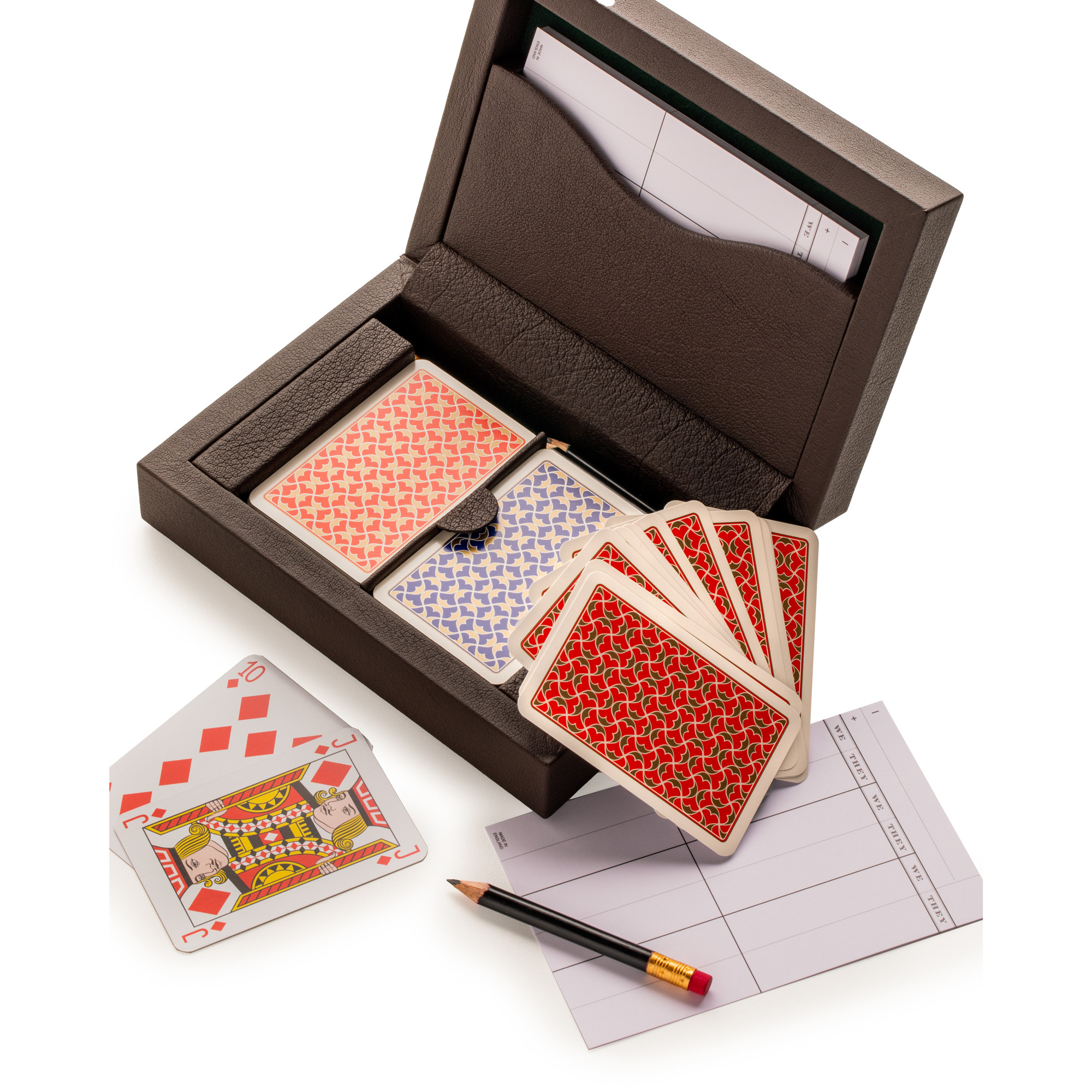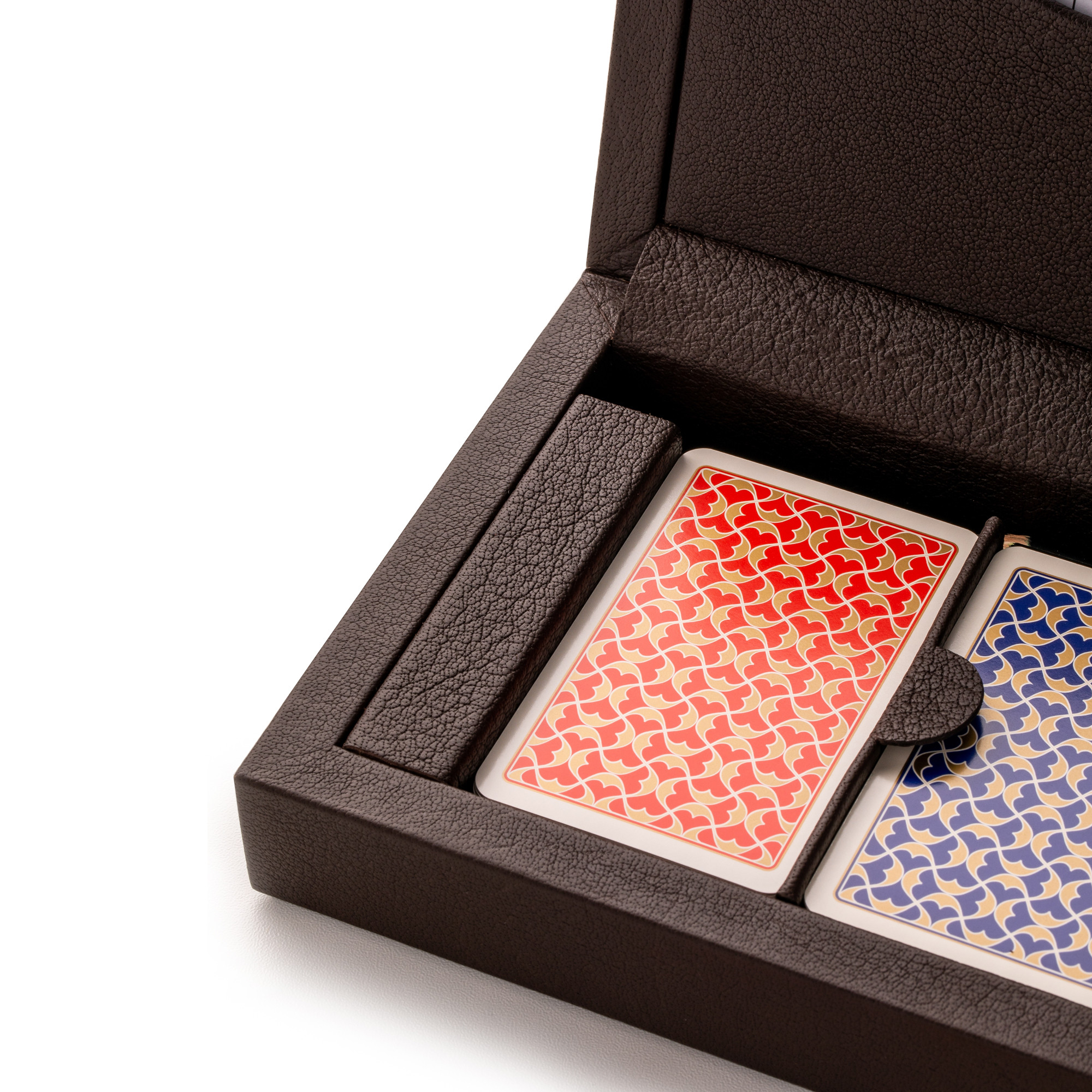 A classic game, beautifully elevated. The Westley Richards Bridge Set is housed in a handcrafted buffalo-leather case made in England, finished with our custom brass closures engraved with the WR logo. The interior is lined in rich green baize for a traditional, tactile feel, with premium playing cards neatly arranged and ready for play. Refined and timeless, it’s an exceptional gift for anyone who values true craftsmanship.