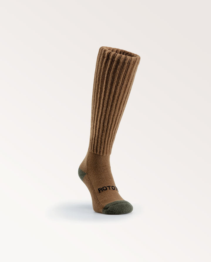 The Rototo Merino Lambs Wool High Sock, made in Japan, is crafted from a luxurious blend of merino wool and lambswool for superior warmth and comfort. Featuring a ribbed design for a snug fit and reinforced heels and toes for durability, these socks are perfect for outdoor adventures. They make a great gift for sportsmen who value both performance and comfort in their gear.
