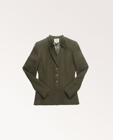 The Ladies Jacket in Classic Tweed by Tba is beautifully crafted from a supple wool tweed and is finished with decorative antique metal buttons. This unique piece is elegant, stylish, and timeless with a classic cut.