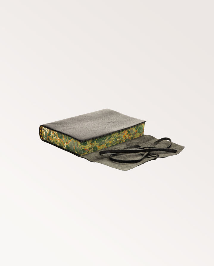 The perfect gift for the adventurer. This handsome leather bound journal has been hand crafted in Florence, Italy by Cavallini. The pages are an elegant Italian wove paper, and the edges are enhanced by a stone marbling technique, giving a varied pattern for each journal. The softcover binding is finished with a leather Wraparound strap. Variations in colour and texture of the leather are part of the unique quality and aesthetic of this handcrafted journal.