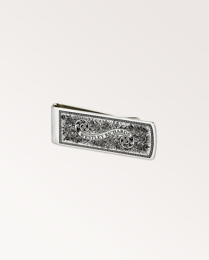 Silver Money Clip with Traditional Scroll Engraving