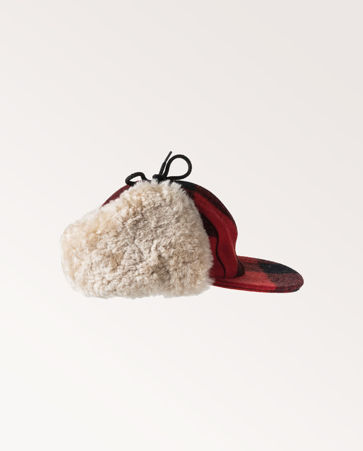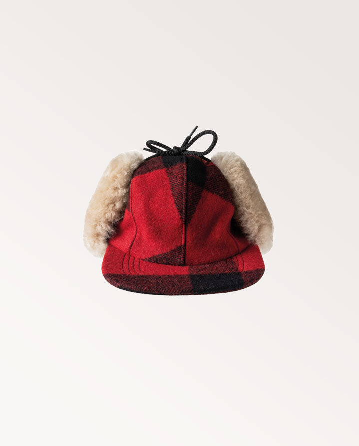 The Filson double-layer Mackinaw Wool cap is naturally rain-repellent, and features a 3" bill to help shield you from the elements without compromising on visibility. The added sheepskin shearling-lined earflaps and neck flap keep your head warm and dry. Complete with an insulated crown, nylon lining and tie-back.