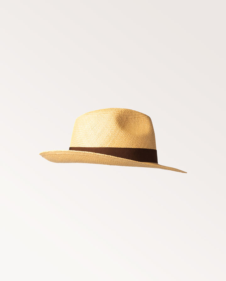 The Westley Richards Sporting Panama is hand woven in Ecuador and shaped, blocked and finished in England, these genuine Panama hats will look and wear handsomely for many summers to come. This classic down brim is a timeless Panama which suits most people features a brown grosgrain ribbon and is finished with a bound edge.