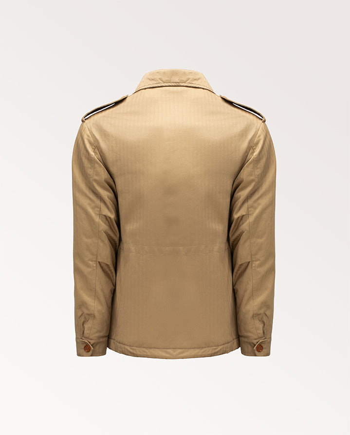The Smith Jacket by L'Impermeabile is a modern take on the classic field jacket design. Elevated with a warm wool lining and light insulation, this robust jacket is crafted from a cotton herringbone cloth that has been treated with a water-repellent finish.