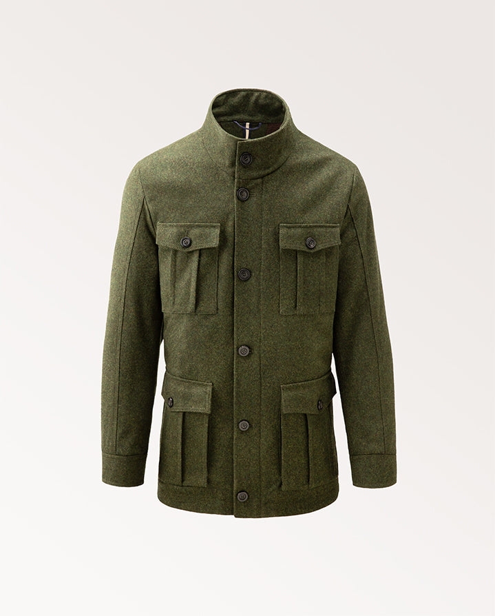 The Maximilian Como Jacket, new to Westley Richards, is crafted from 100% wool and embodies the traditional military field jacket style. Designed by a team from the renowned Schneiders group, it combines timeless elegance with practical functionality. Featuring multiple pockets and a high-buttoned collar, this jacket is perfect for outdoor adventures while reflecting a heritage of quality craftsmanship.