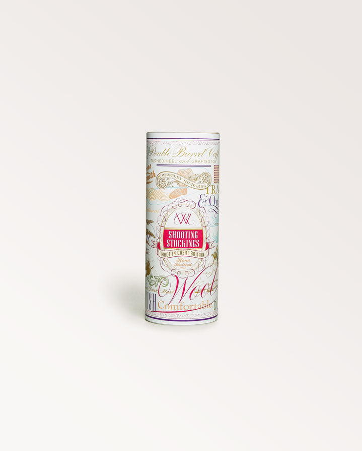 Featuring a double-barrelled cuff, turned heel and grafted toe for supreme comfort and durability, these exquisitely made socks are available in a range of distinctive designs - making them an ideal and unforgettable gift. Presented in a beautifully designed, specially commissioned gift canister.