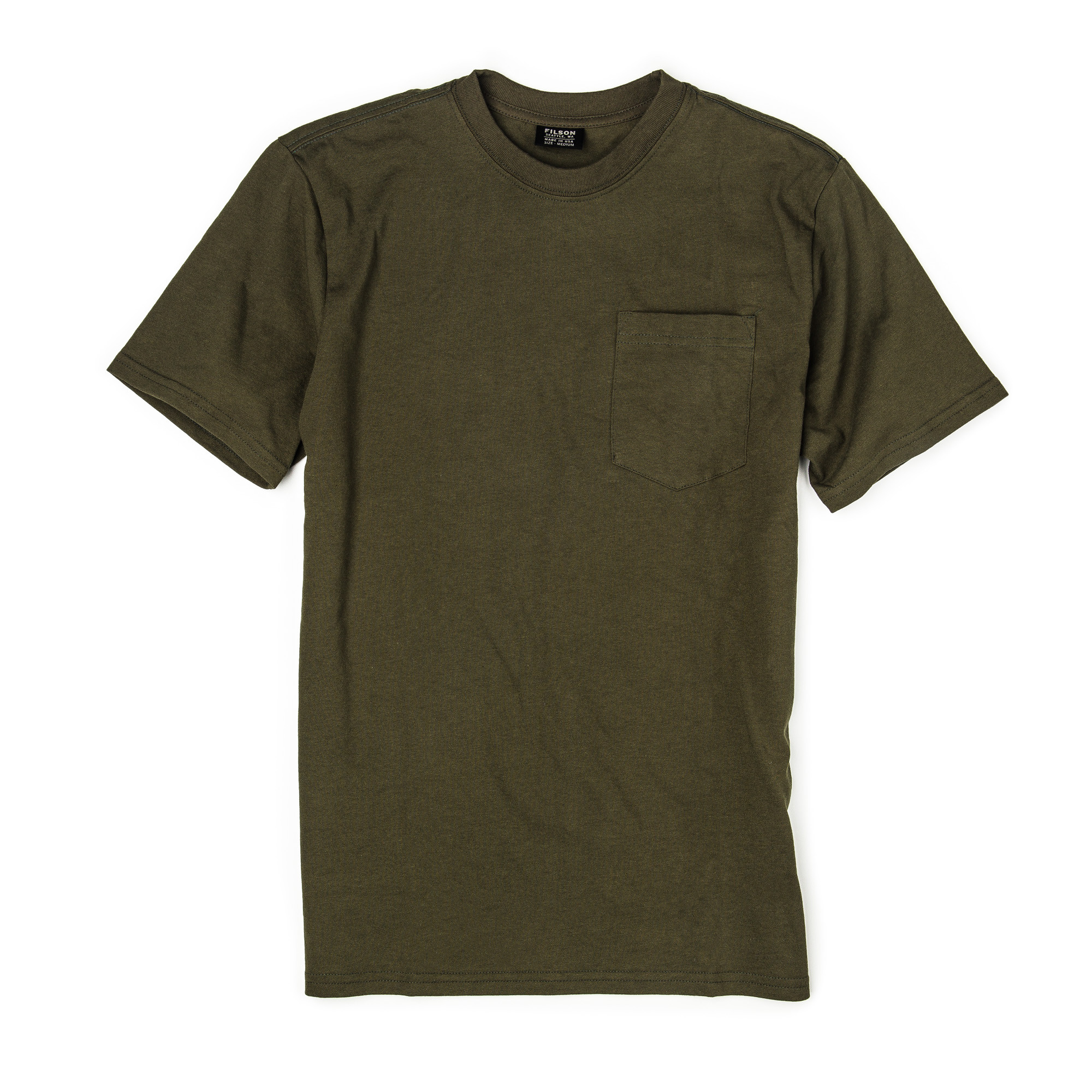 The Filson Short Sleeve Outfitter Solid One-Pocket T-Shirt is a classic addition to any wardrobe. Built with medium-weight cotton jersey for durability, this machine-washable shirt has a ribbed crew neck style for comfort and a righthand chest utility pocket.