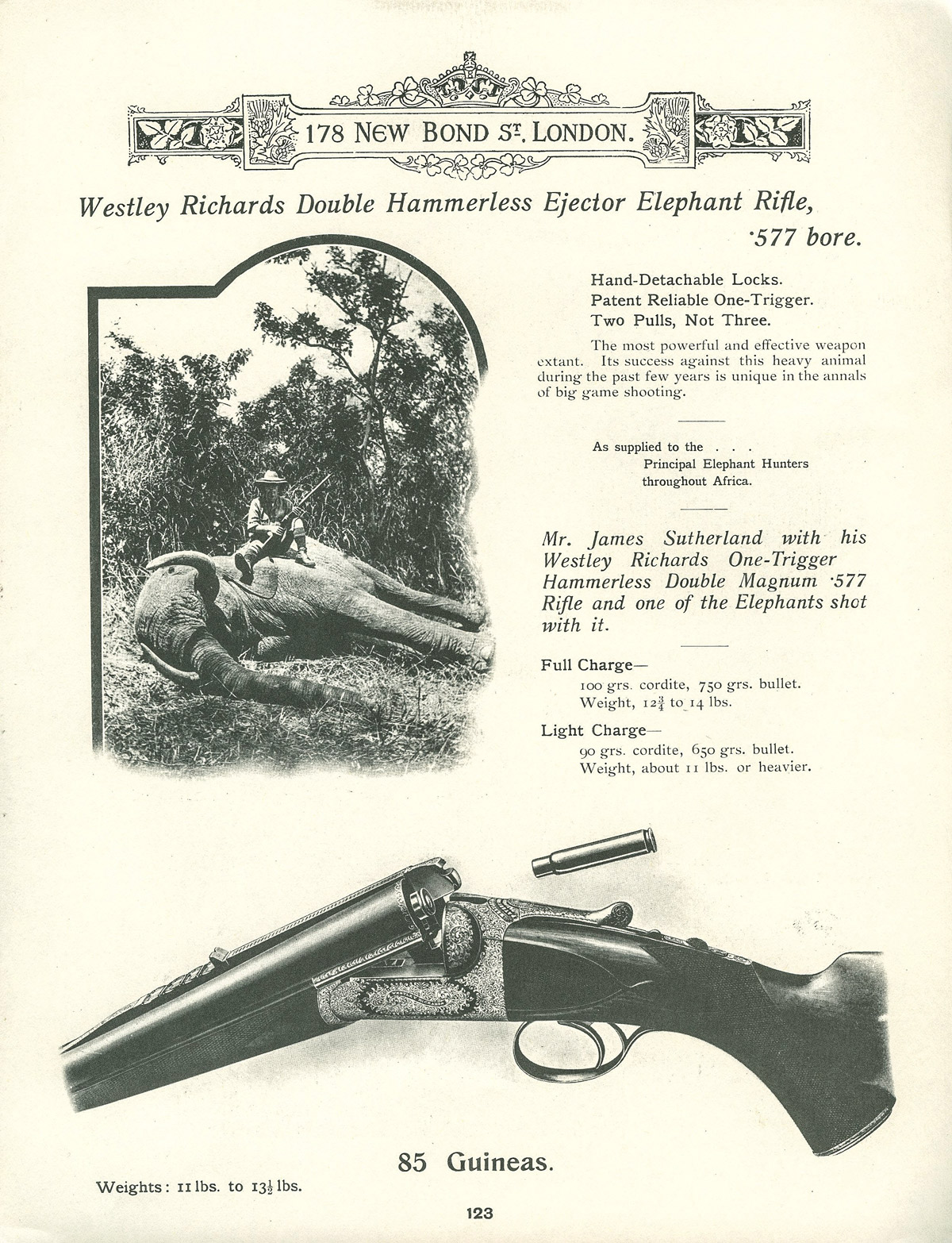 Westley Richards has been privileged over the years to work with some of the finest professional hunters that have ever lived. This has helped us to understand unequivocally the requirements expected of our rifles and to build into them today a pedigree that is without question. Ivory hunter Captain James Sutherland was a staunch advocate of our heavy calibre hand detachable lock double rifle fitted with single selective trigger. Modern day professionals like Johan Calitz, appreciate the fast handling and in-field practicality offered in our rifles. Whether past or present, professional hunters have entrusted their lives to us for generations.
