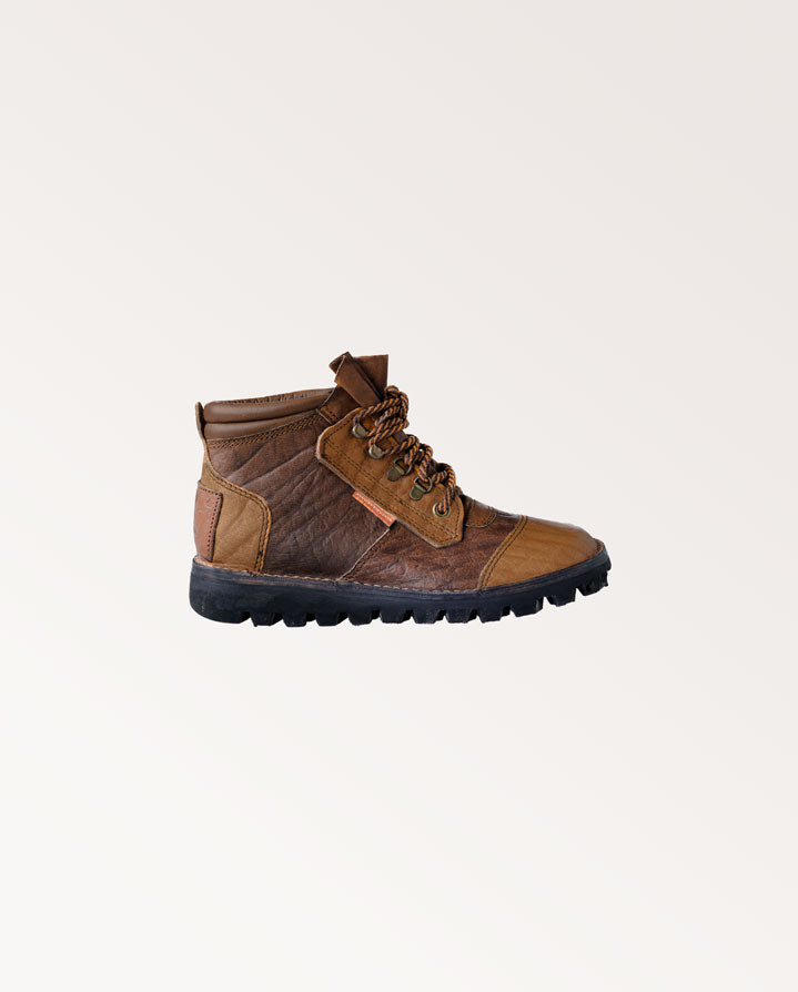 A slightly modified, four inch ankle height boot, the Safari affords the very same features as our Selous with the same hand crafted construction and genuine Buffalo hide upper and natural rubber tyre tread sole.