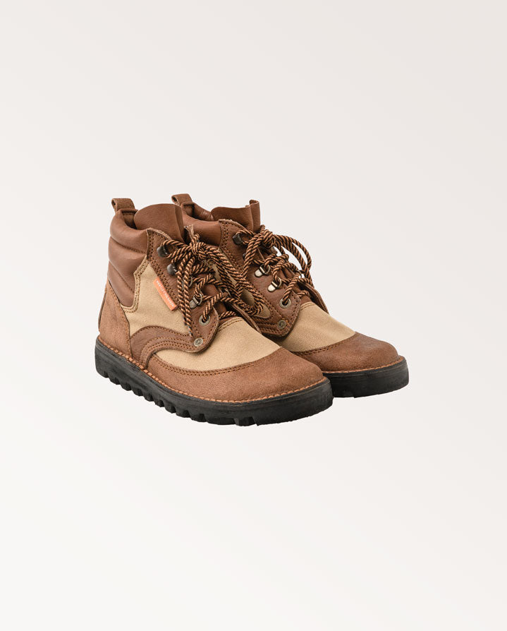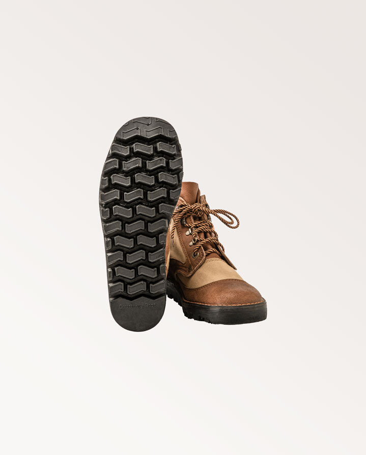 Tested and proven by Southern Africa's elite professional hunters and safari guides, the Selous features a soft impala hide collar, tyre grip sole, speed lacing and full bellows tongue for total protection. This new style of Courteney Selous boot in canvas is a brilliant lightweight alternative, featuring the same robust hand crafted construction, speed lacing and natural rubber tyre tread sole.