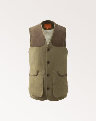 The Westley Richards Hunting Vest is crafted from a cotton-blend technical fabric that is water-resistant, quick-drying, and packable, perfect for shoots in the UK, safari, or dove shooting in Argentina. Featuring two cartridge pockets, Alcantara shoulder patches, and a removable foam insert, it combines practical performance with refined sporting style for any adventure.