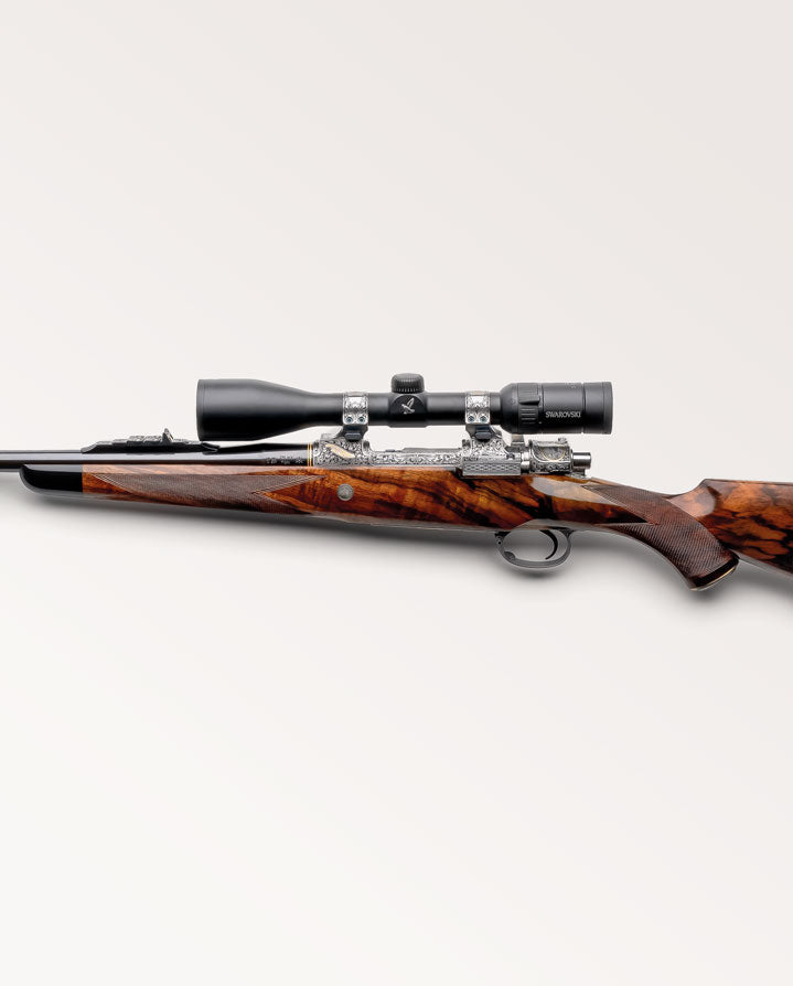 Available from .22 to .505 Gibbs in fixed or take-down formats. Best quality, Mauser ’98 sporting magazine rifles, hand-made in Birmingham for over a century. Whether for stalking deer, plains game or the most dangerous species, these rifles are built on one of our four appropriately scaled actions: Short, Intermediate, Standard or Magnum.