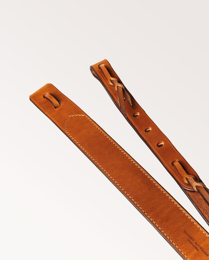 Our 1.5" leather rifle sling is durable and fit for purpose. Following a traditional English design this classic sling is popular for its strong ends for securing your rifle. Our new design features a lightly padded shoulder, covered in the finest Italian Alcantara.