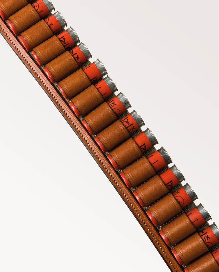Our 12 Gauge Canvas and Leather Cartridge Belt is made in our own leather workshops from the highest quality Italian bark-tanned leather and robust British cotton canvas.
