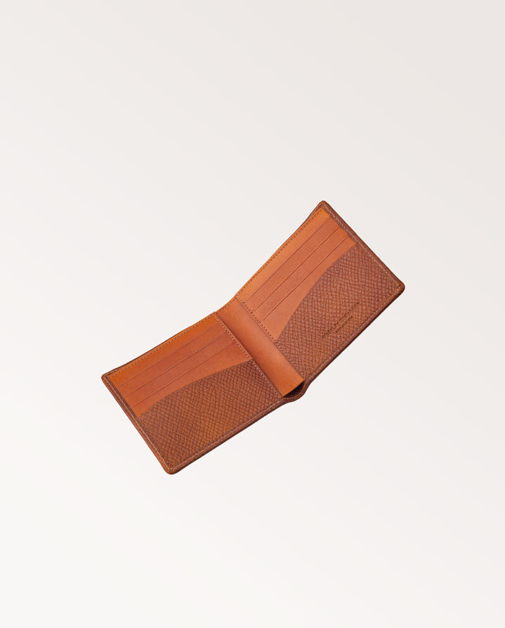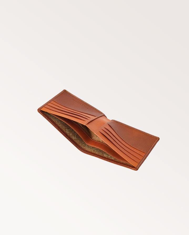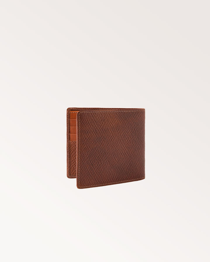 Made in small-batch in England, our Aston Billfold Wallet combines Horween Pioneer Hatch Grain and smooth traditional dark-tanned leathers. It is made up of 8 interior card slots, 2 large gusset note holder, lined with a bespoke Westley Richards engraving design and finished with our Westley Richards classic motif, in blind.