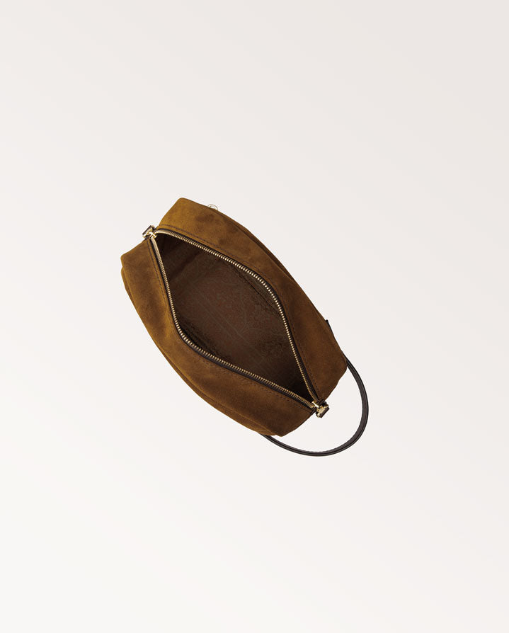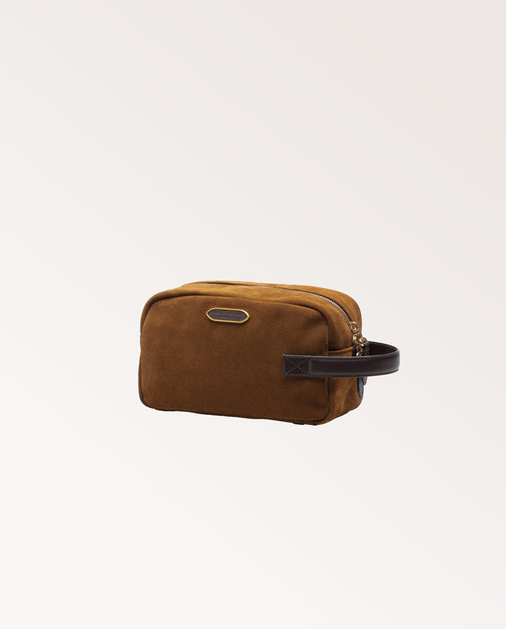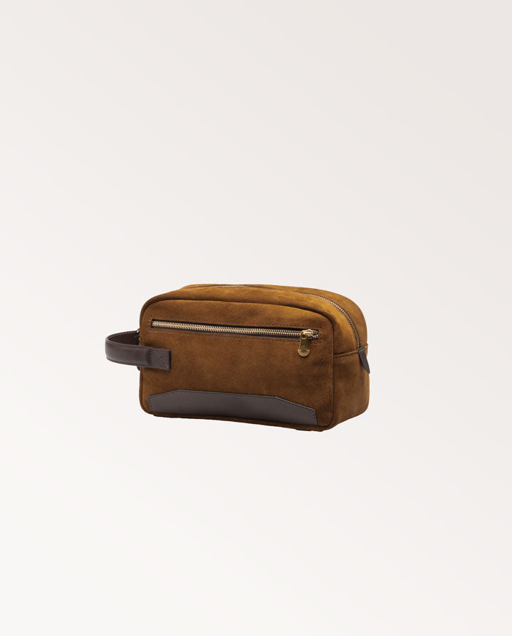 The Bournbrook Wash Bag is your perfect travelling partner and now available in a special edition Italian walnut suede. Sports a large open interior with a robust matching handle and a secure external pocket for extra storage.