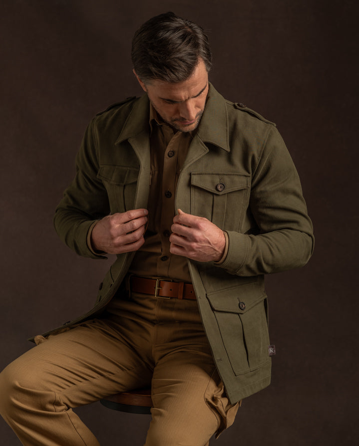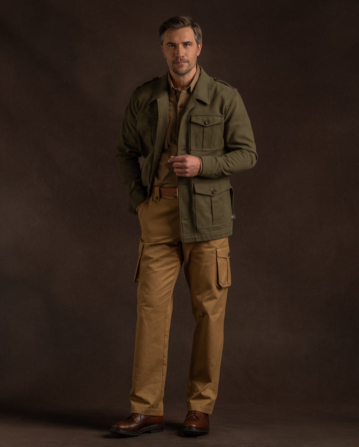 Inspired by the iconic British actor Stewart Granger for his history with Westley Richards, this handsome travel jacket has proven popular.