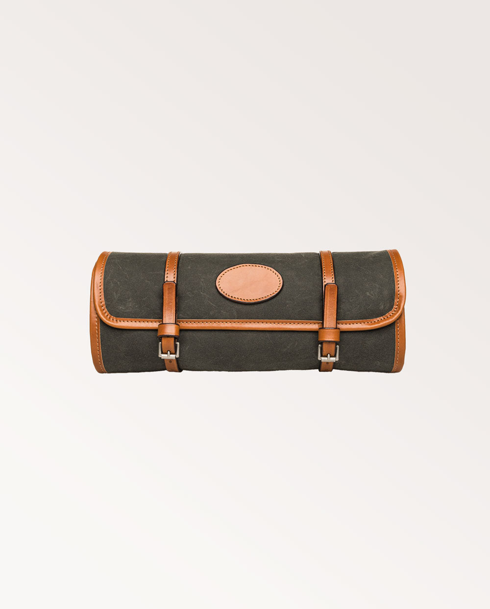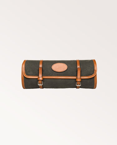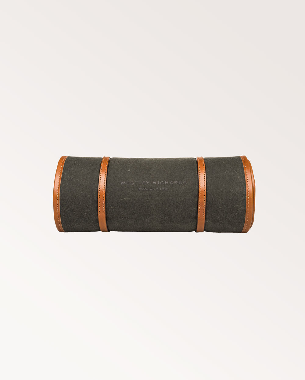 This Waxed cotton version of the Westley Richards Gun Cleaning Mat gives a level of water repellence for use inside or out. Made in a heavy-weight waxed cotton with leather details and providing a full length bed of fleece on which to lay your gun or rifle during the cleaning process. The mat rolls up after use for storage.