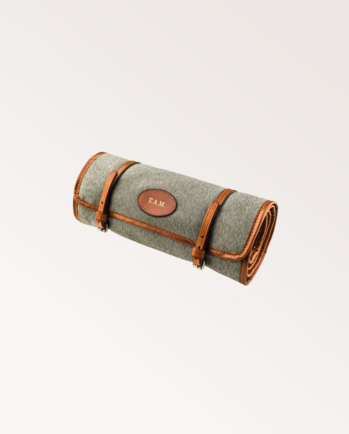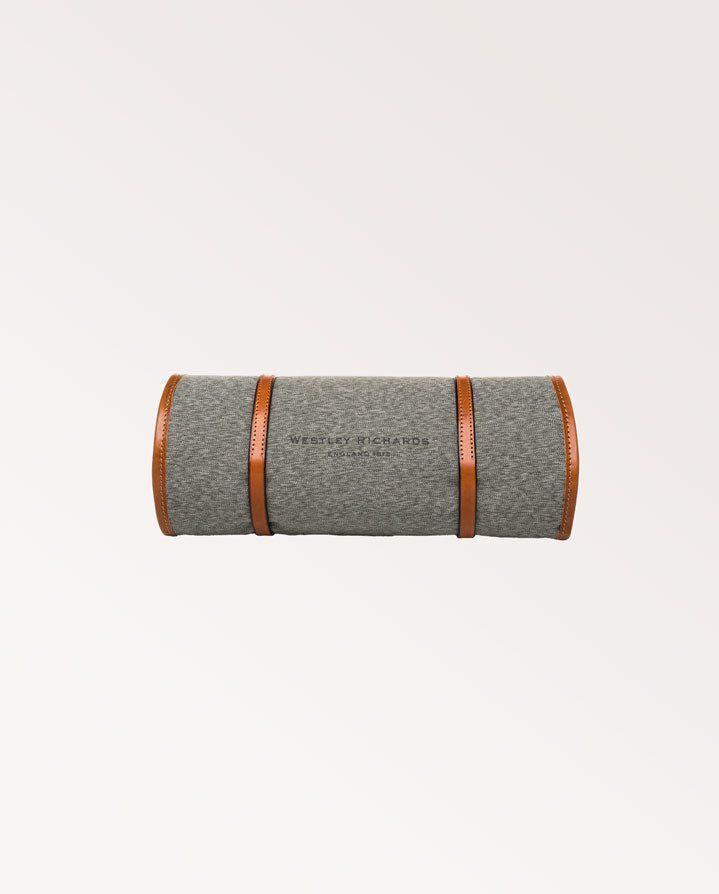 This Waxed cotton version of the Westley Richards Gun Cleaning Mat gives a level of water repellence for use inside or out. Made in a heavy-weight waxed cotton with leather details and providing a full length bed of fleece on which to lay your gun or rifle during the cleaning process. The mat rolls up after use for storage.