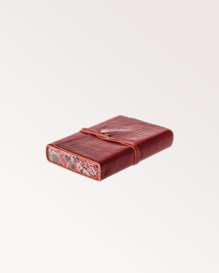 The perfect gift for the adventurer. This handsome leather bound journal has been hand crafted in Florence, Italy by Cavallini. The pages are an elegant Italian wove paper, and the edges are enhanced by a stone marbling technique, giving a varied pattern for each journal. The softcover binding is finished with a leather Wraparound strap. Variations in colour and texture of the leather are part of the unique quality and aesthetic of this handcrafted journal.