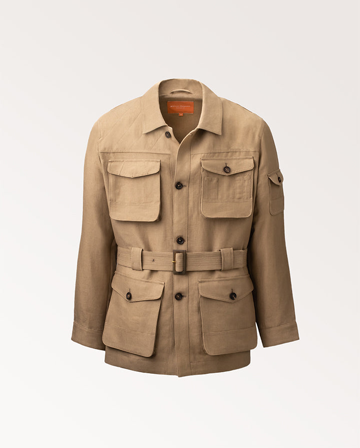 Crafted from a pure linen cloth by British manufacturer Brisbane Moss, for its cool comfort and authentic feel, this crisp yet rugged material holds up to the rigours of the African bush.