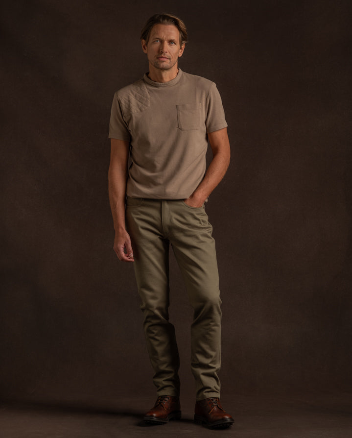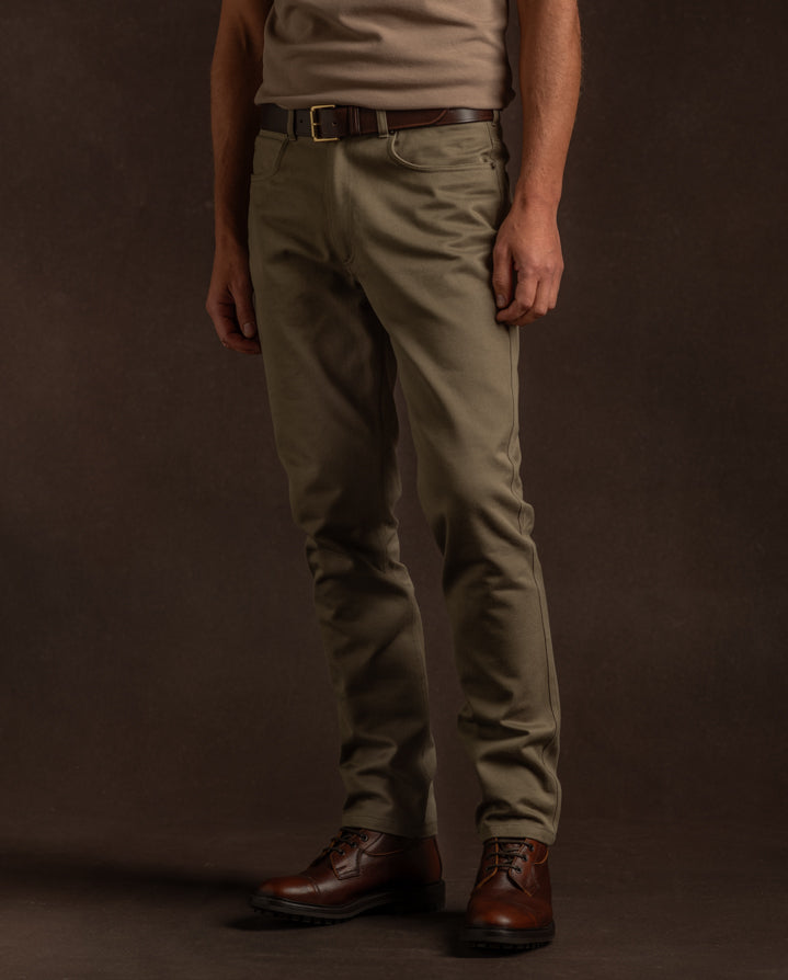 Crafted from organic heavyweight twill woven in the UK, the Lyell Jeans in Sage combine robust durability with breathable comfort. Named after Malcolm Lyell, the manager of our Westley Richards store in London from 1948-1956, these ever practical jeans live up to the name.
