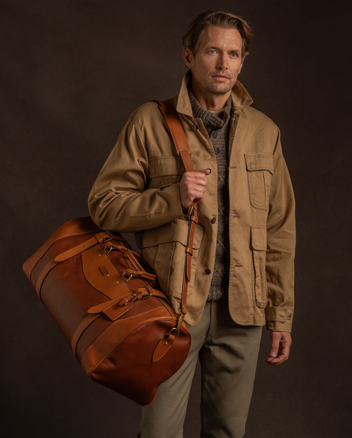 The medium Sutherland Bag is as hardy as the legendary hunter whose name it bears, James Sutherland (1872-1932). Conceived as the ultimate safari kit bag, it is easily foldable for stowage anywhere whilst its robust saddlery construction means it can more than stand up to the harshest treatment and the toughest conditions.