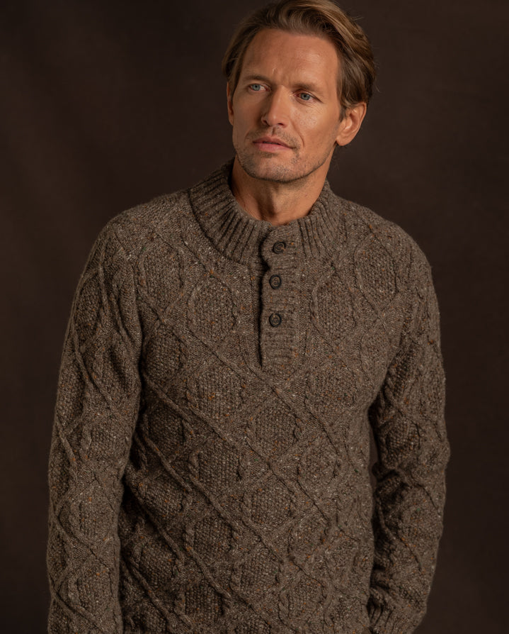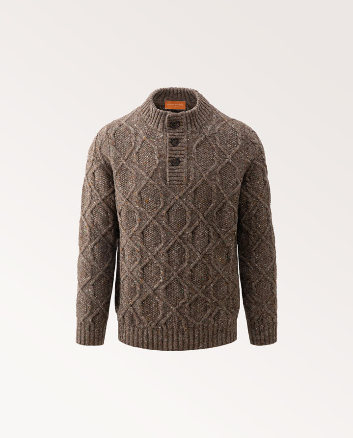 Knitted in Scotland from a refined blend of wool and cashmere, the Nidderdale Mock Neck offers warmth, softness, and enduring style. Its characterful marl finish adds depth and texture, while the button-down quarter neck collar provides both versatility and comfort.