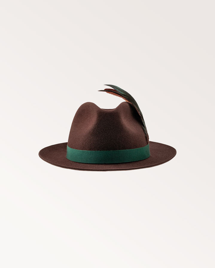 The Westley Richards Yorkshire Fedora is a luxurious hat, crafted in England by a small-batch hat maker, using premium fur felt. Designed for outdoor pursuits, this fedora offers both elegance and durability, making it a refined choice for those who seek a blend of style and practicality in their outdoor wear.