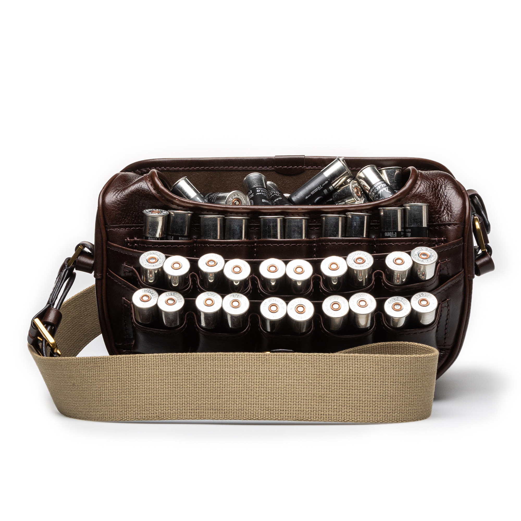 For super-fast cartridge access and ideal for a loader servicing a double-gun day, the Anson Express Bag carries 150 cartridges with provision for fifty more in the loading pockets. These bags are available in a range of colours and leathers, with premium brass hardware and construction integrity that is second to none.
