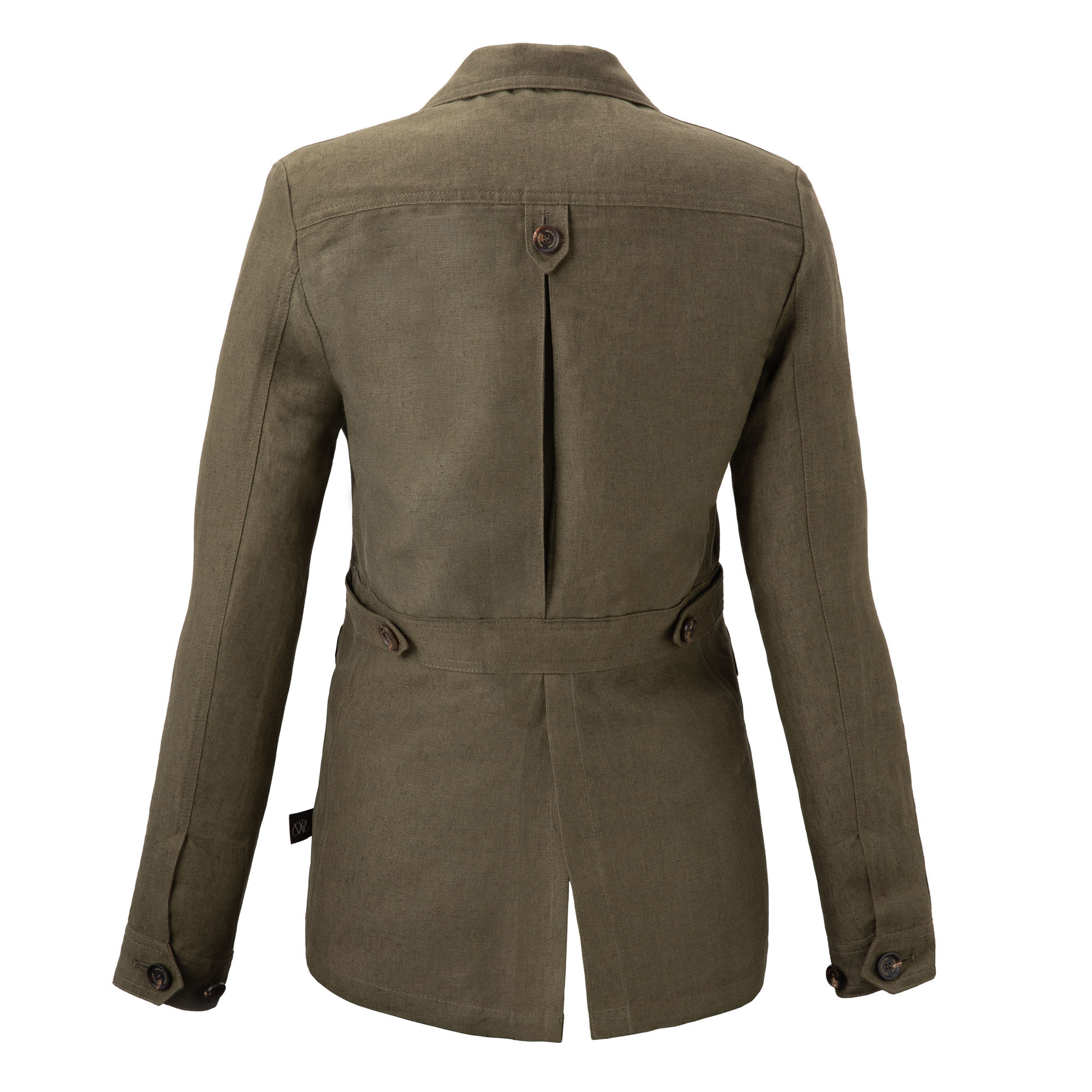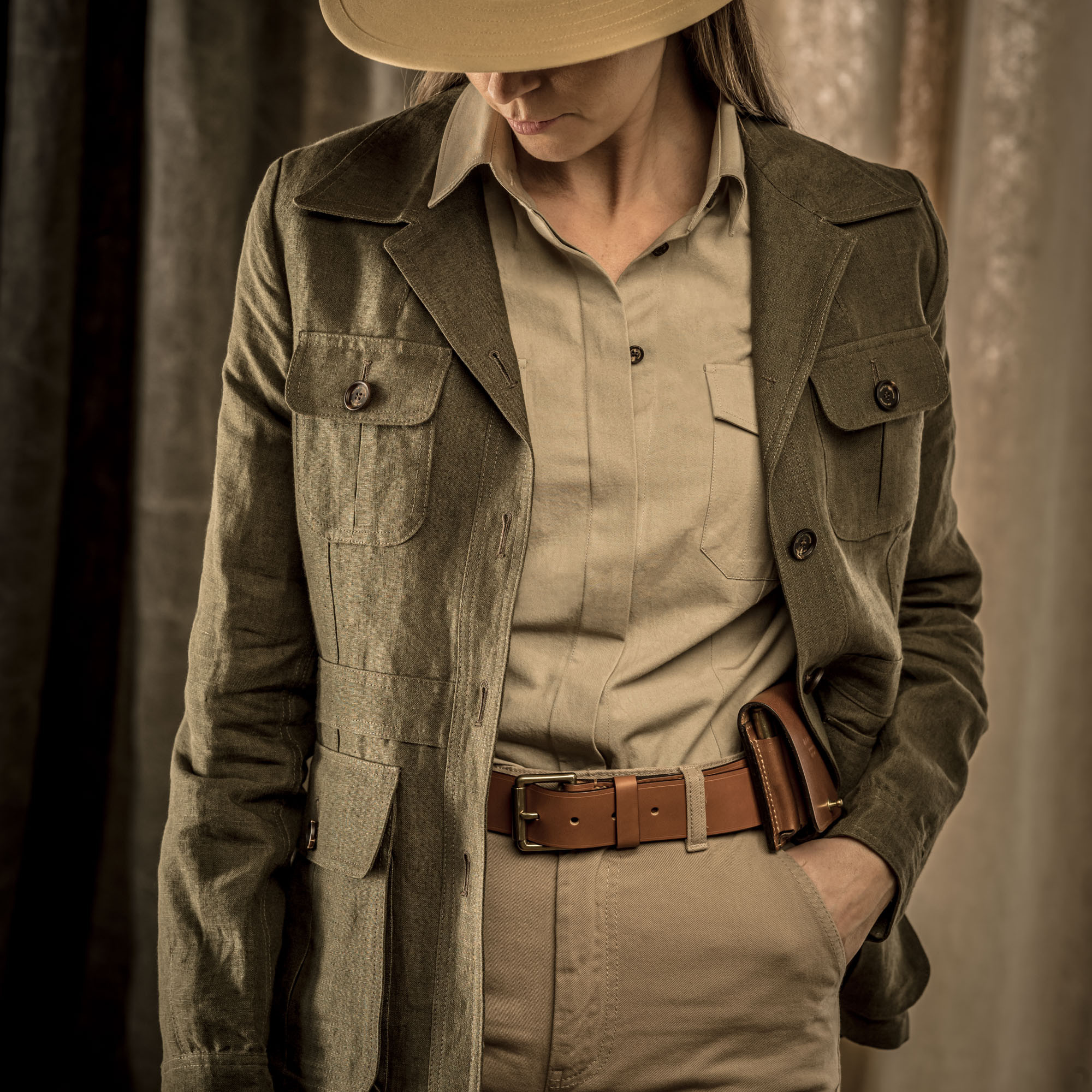 The classic safari jacket re-imagined as a flatteringly cut, slightly cropped and very feminine garment for African adventure or summer casual wear. Made in a subtle Cape Green linen with adjustable waist and action back, the Westley Richards Safari Jacket is as much a sporting classic as a drop-lock double rifle.