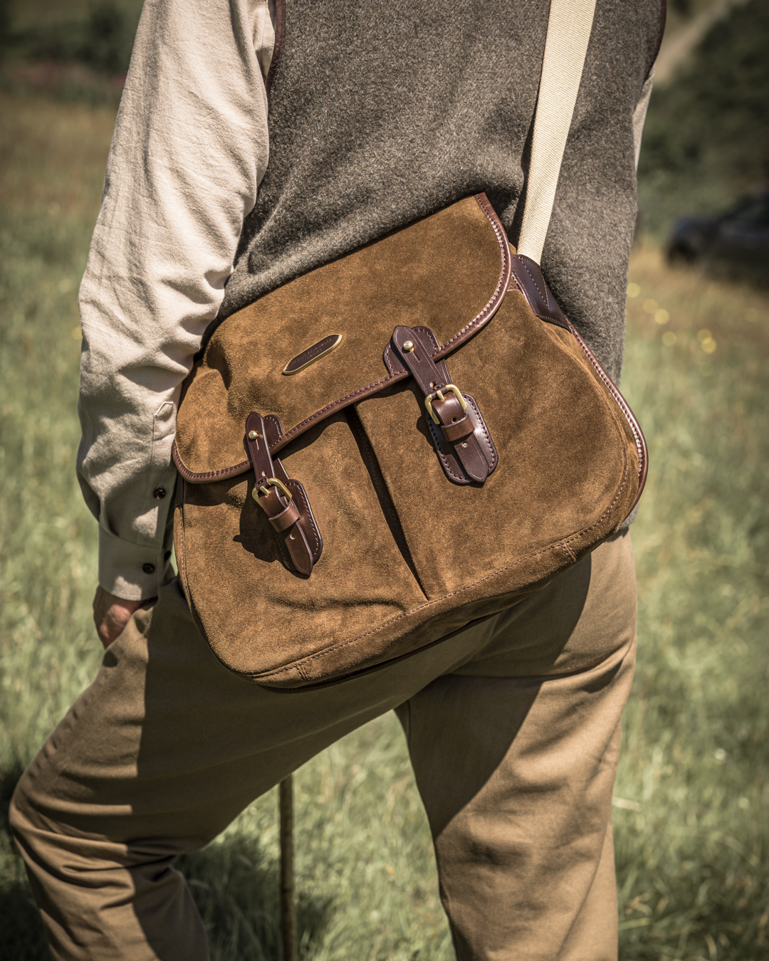 The original design is the Bishop classic, based on a fishing bag that was popular a century ago. It features twin outer bellows pockets, easy-access stud-and-buckle fasteners, an internal zip pocket and the Westley Richards branded hardware and lining common to our other ranges.