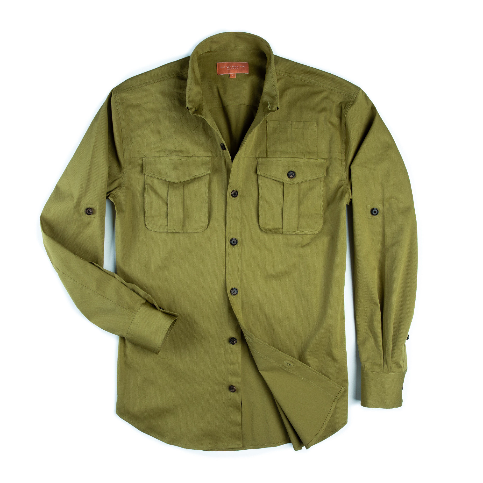 The latest addition to Westley Richards thoughtfully designed safari range, the Campaign Shirt is fit for its purpose. With an improved design for an easy fit with maximum movement when mounting your gun, this classic safari style shirt is crafted from a lightweight cotton and elastane blend for a slight stretch. Finished with our real horn buttons and featuring a quilted right shoulder as well as easy to access ammunition slots.