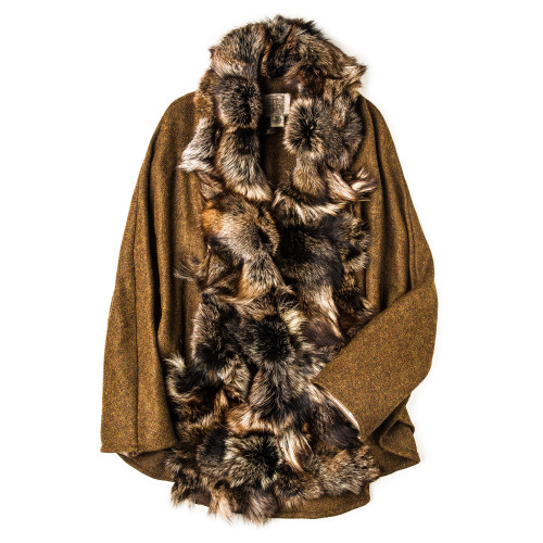 Superbly crafted from a sumptuous combination of wool tweed and fox fur, this luxurious cape is easy to wear, extremely comfortable and effortlessly elegant.