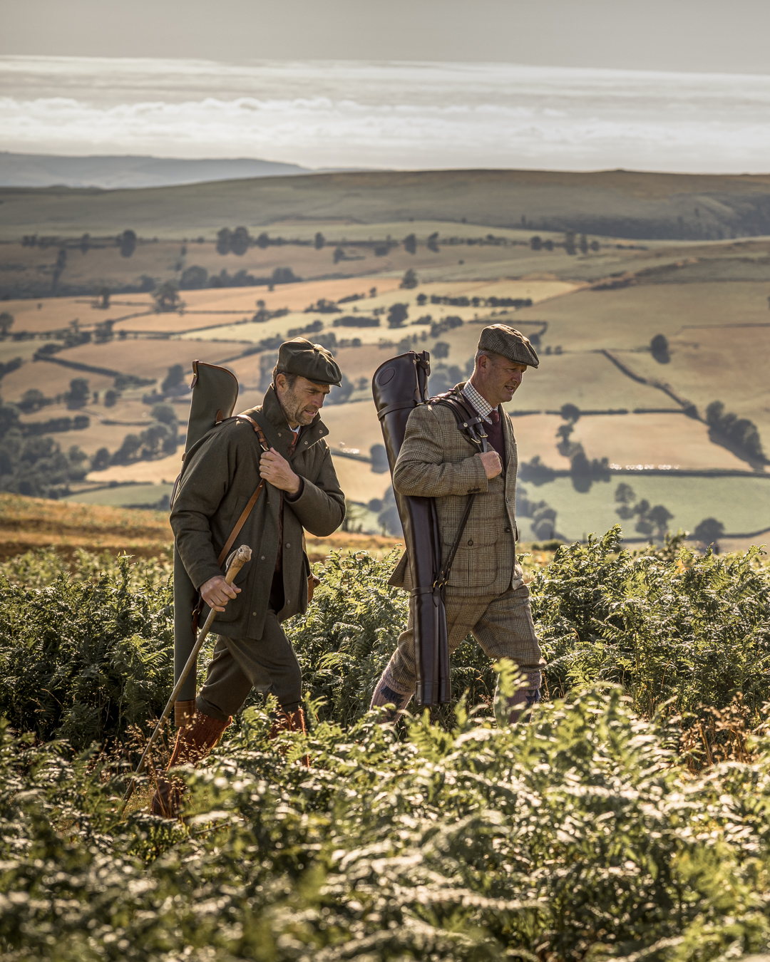 Harpton is our new tweed for 2025, first shown in our promotional films and photographs for the latest catalogue. On the grouse moor on the Harpton Estate, overlooking stunning Welsh countryside near Presteigne, it blended perfectly with heather and the backdrop of fields, hills and forestry.