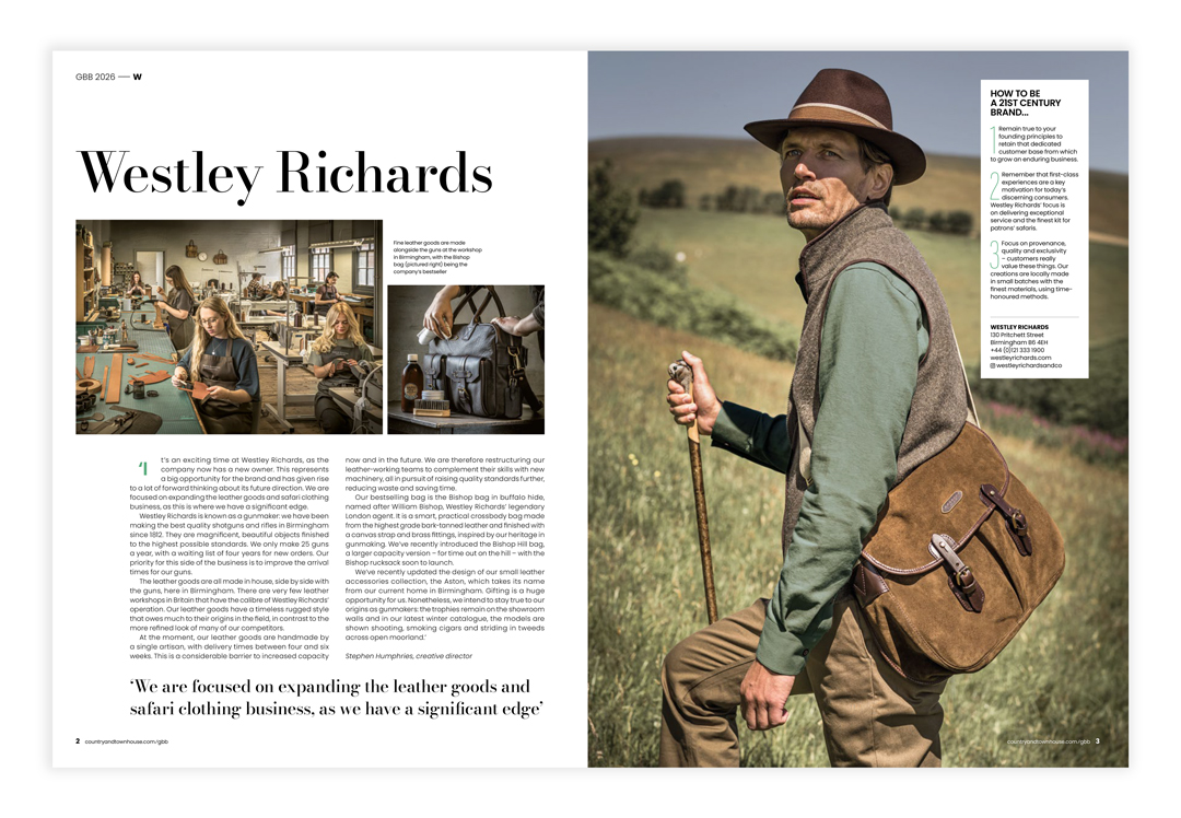 "It’s an exciting time at Westley Richards, as the company now has a new owner. This represents a big opportunity for the brand and has given rise to a lot of forward thinking about its future direction. We are focused on expanding the leather goods and safari clothing business, as this is where we have a significant edge.