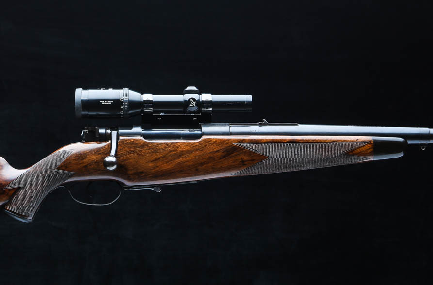 Rifle originally a set trigger but was sent to G&H to be converted to a single trigger and had a new quick release 1" scope mount installed and is fitted with a 1" Swarovski Habicht 1.4-4x24mm Scope. The original triggers are still included with the rifle.