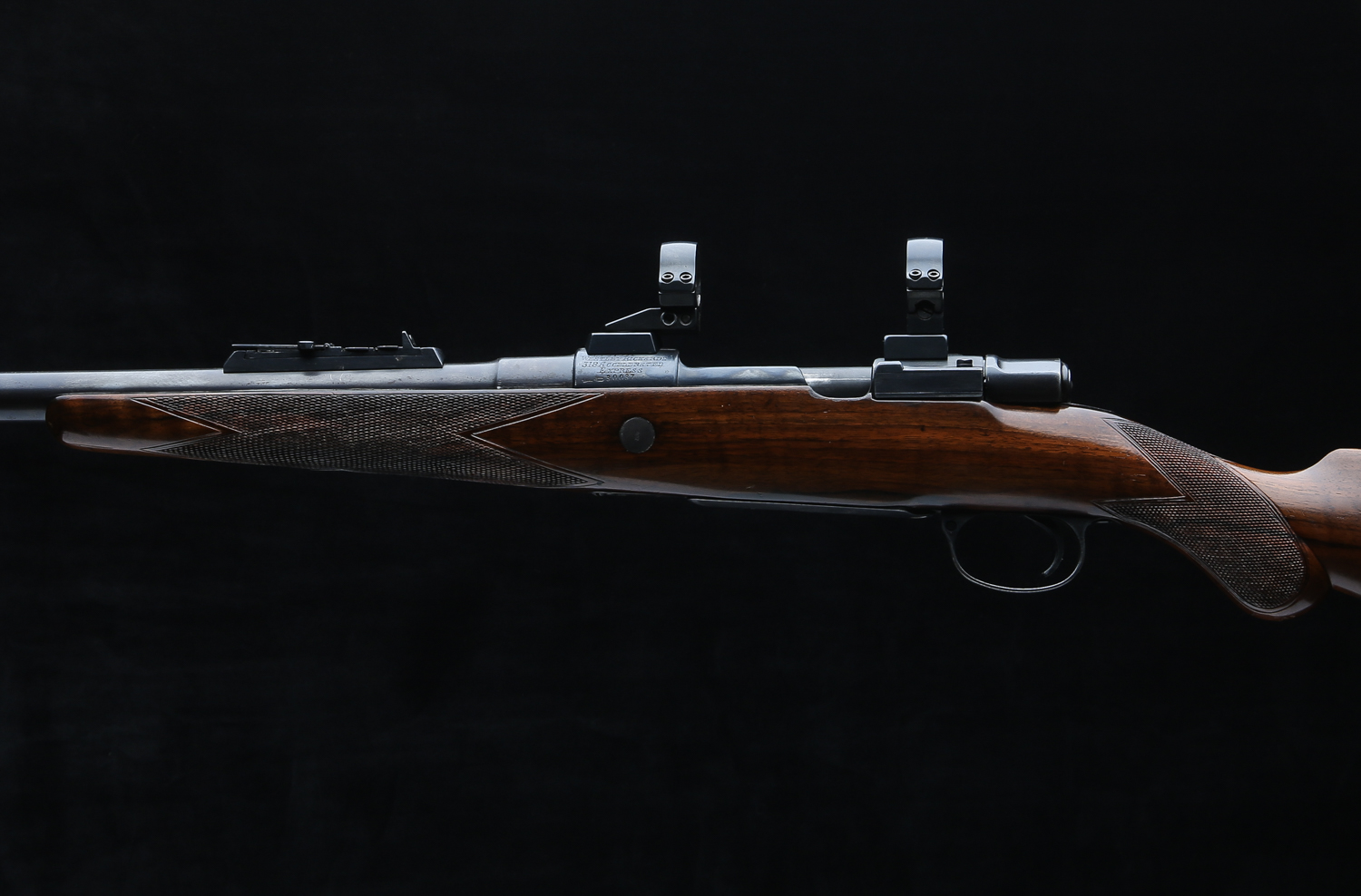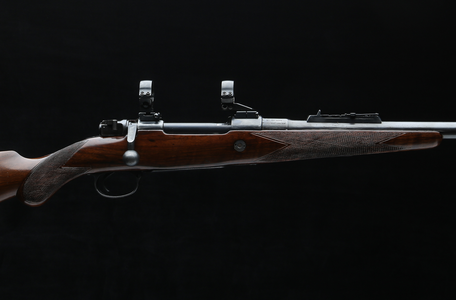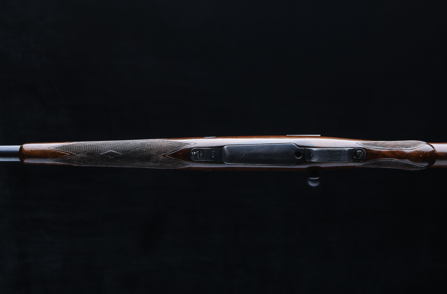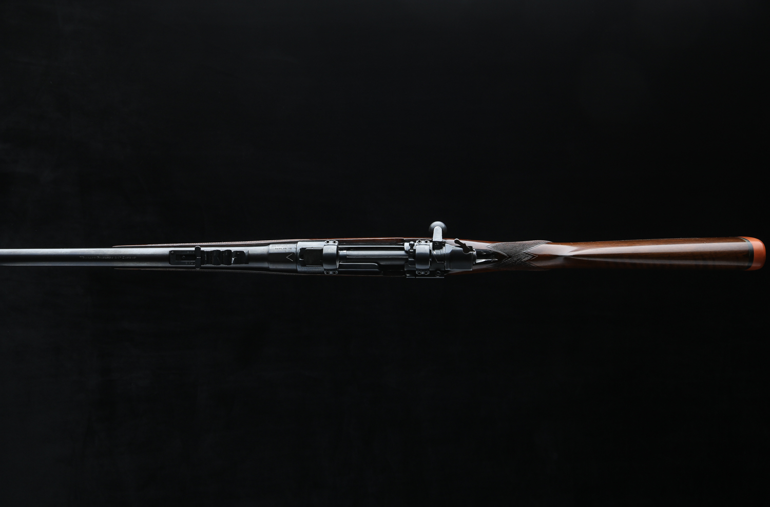 Westley Richards Bolt Action chambered in the firm's venerable .318 Accelerated Express based on an original commercial Mauser action with modern military type hinged floorplate. Updated with modern swing mounts with 1" rings and a new bolt shroud with a 3-position safety.