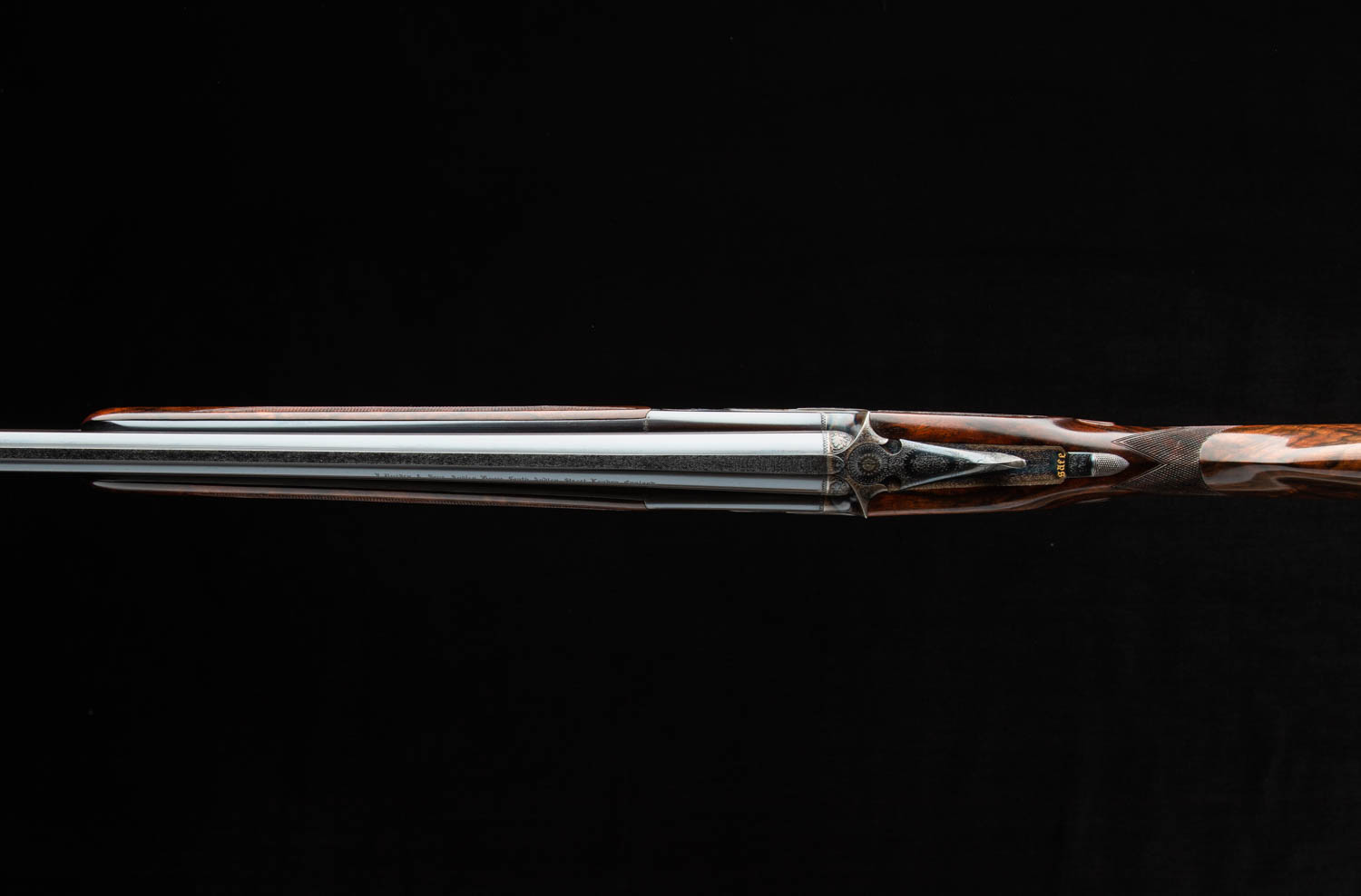 The 28” demi-block barrels are choked .005” and .012” and have a solid matted game rib. Barrels have 1995 London proof and original 70mm (3”) chambers.