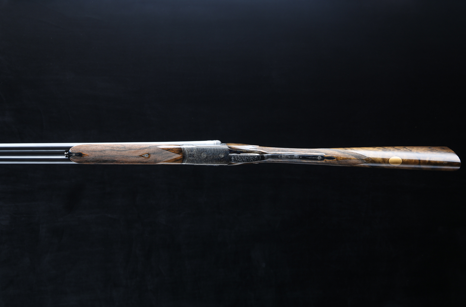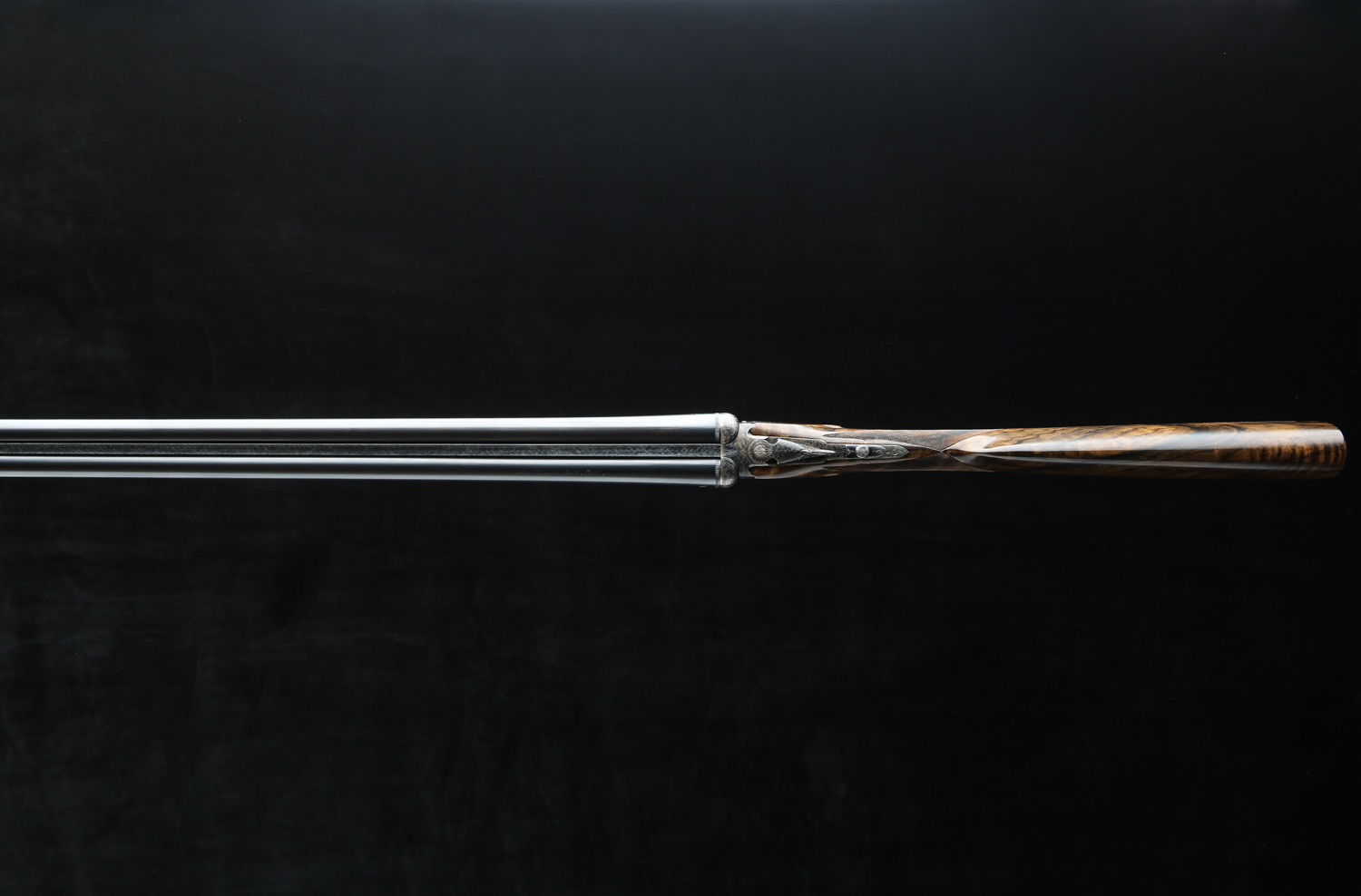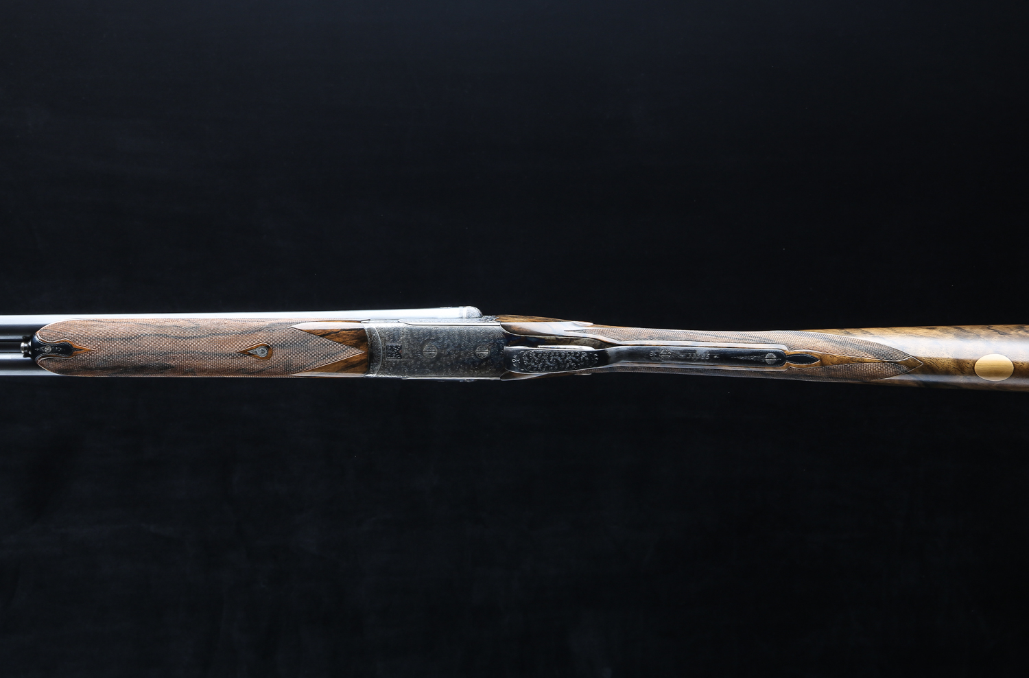 A boxlock ejector by gunmaker, Libero Feraglio who used the first three letters of his first and last name in reverse to come up with “FERLIB”.