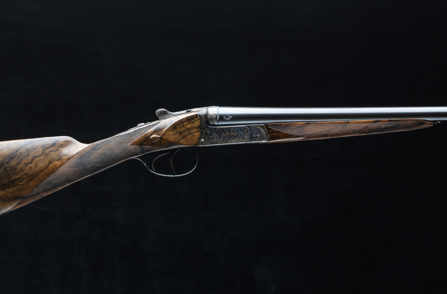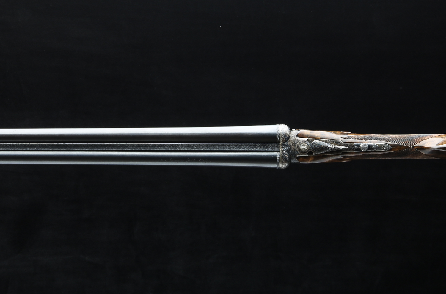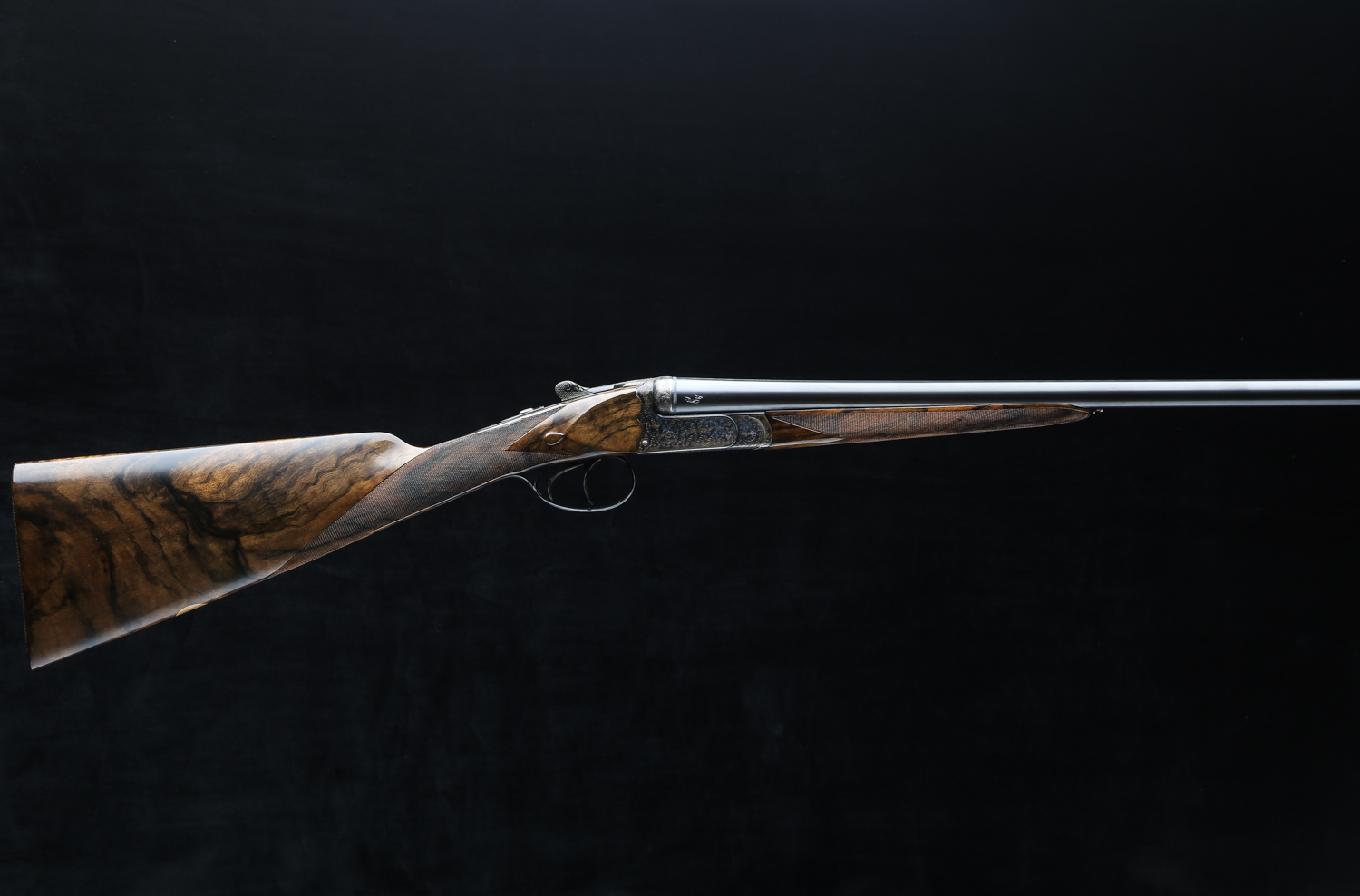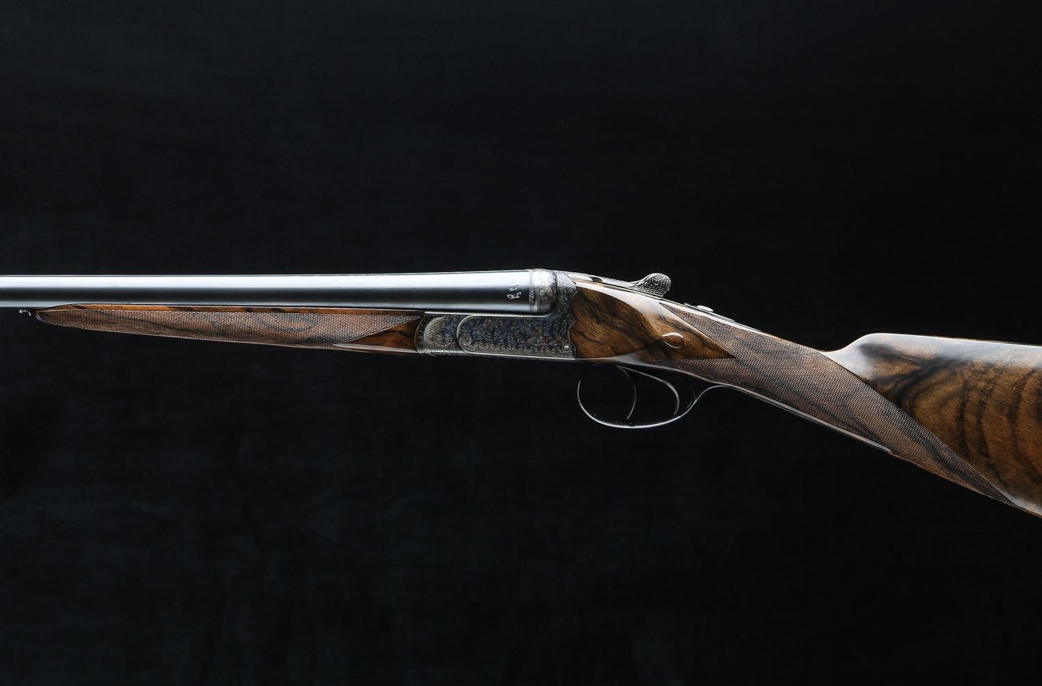 A boxlock ejector by gunmaker, Libero Feraglio who used the first three letters of his first and last name in reverse to come up with “FERLIB”.