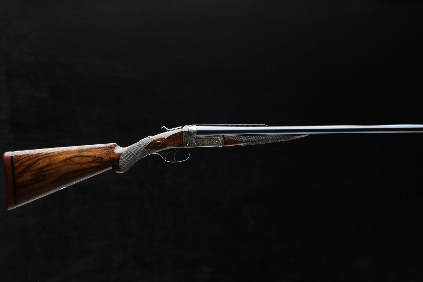 The gun remains in its original configuration with most of its original black left on the furniture and barrels, which were re-proofed in London in 1973, as are the majority of these guns that resurface. The gun also retains ample amounts of its original case colors on the receiver. It is conceivable to imagine this gun originally made with a rubber recoil pad, it now has one to replace that, albeit an old addition. The butt stock has been refinished and was probably done in 1973 when the barrels were re-proofed as there is a nice patina on the stock and pad.